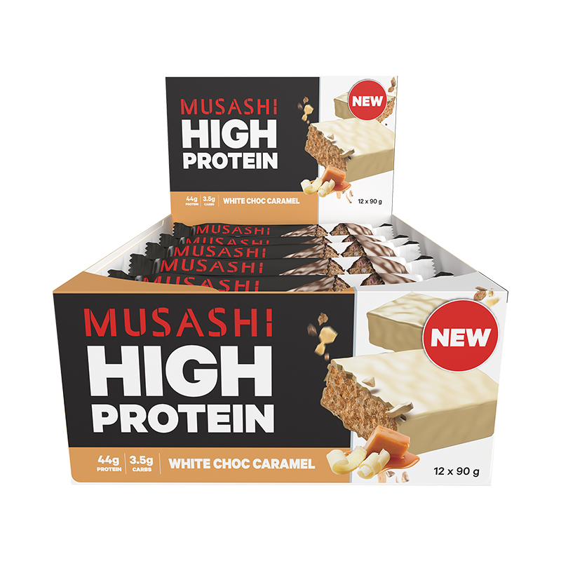 Musashi High Protein-White Choc Caramel 90g x 12 【高含量】蛋白棒白巧焦